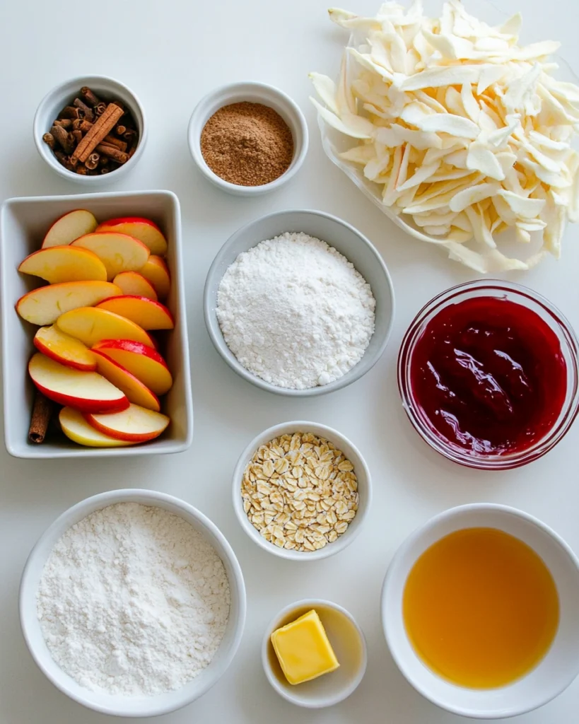 - All-purpose flour – Helps thicken the filling and forms the base of the crumble topping.