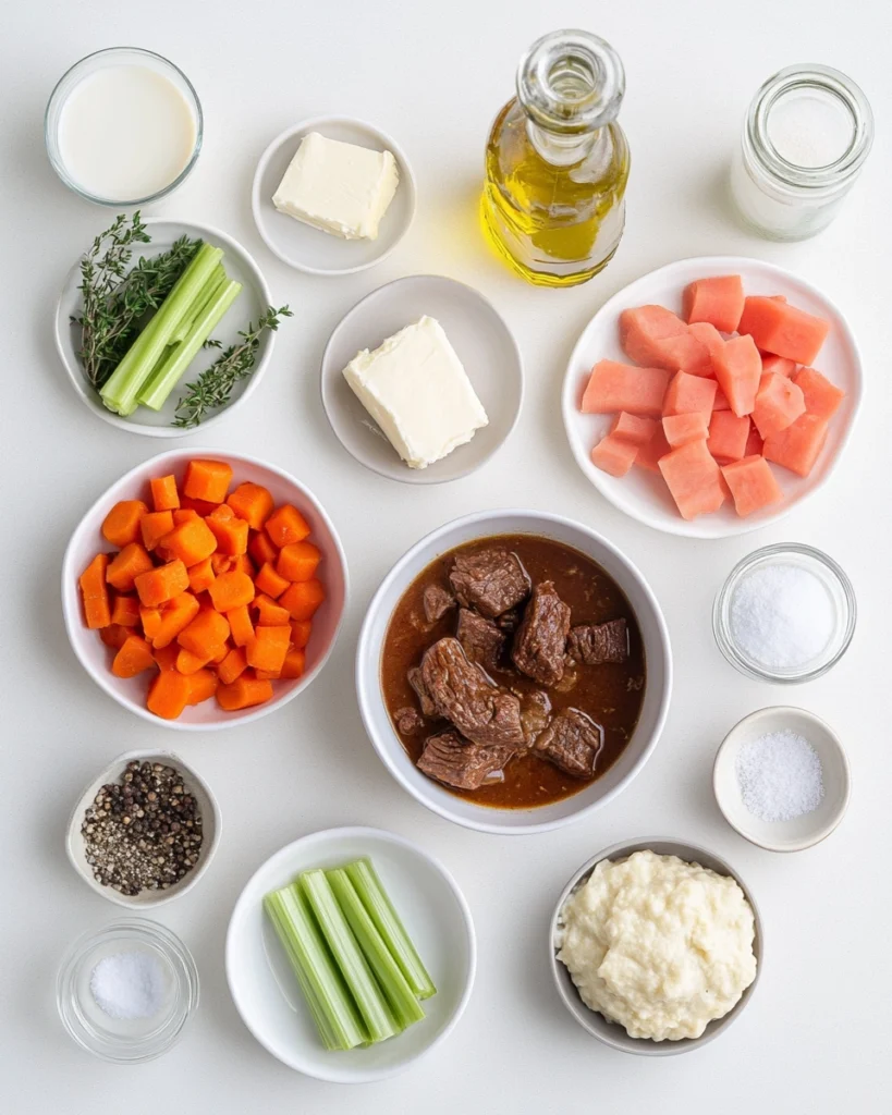 - Carrots – Add natural sweetness and pair beautifully with the rich stew.