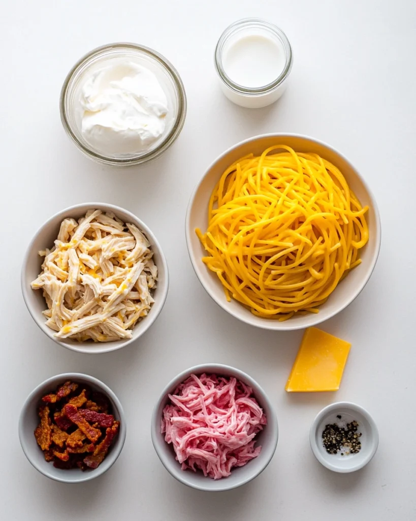 - Cooked shredded chicken – Adds hearty protein and makes the dish extra satisfying.