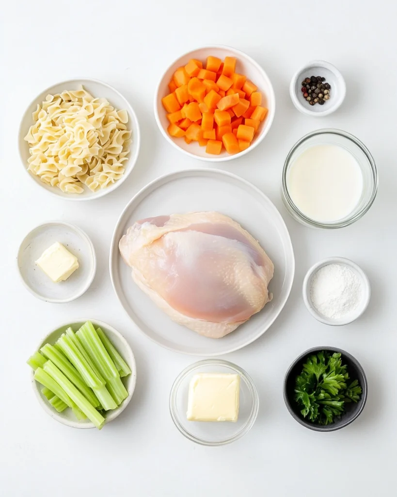 - Egg noodles – Soft and comforting, perfect for soaking up the creamy broth.