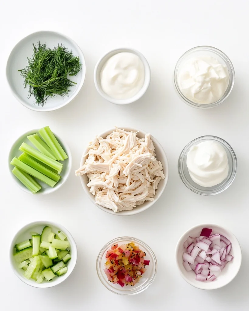 - Fresh dill – Elevates the salad with herbaceous brightness.