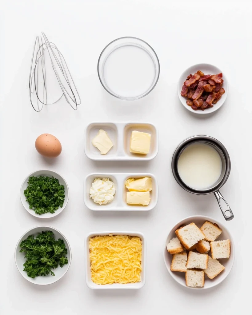 - Bread – Cubed, forms the base that soaks up all the delicious flavors.