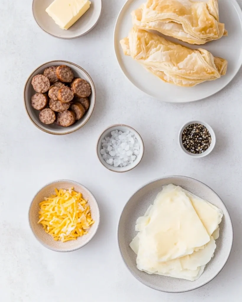 - Puff pastry sheets – Buttery and flaky, perfect for wrapping.