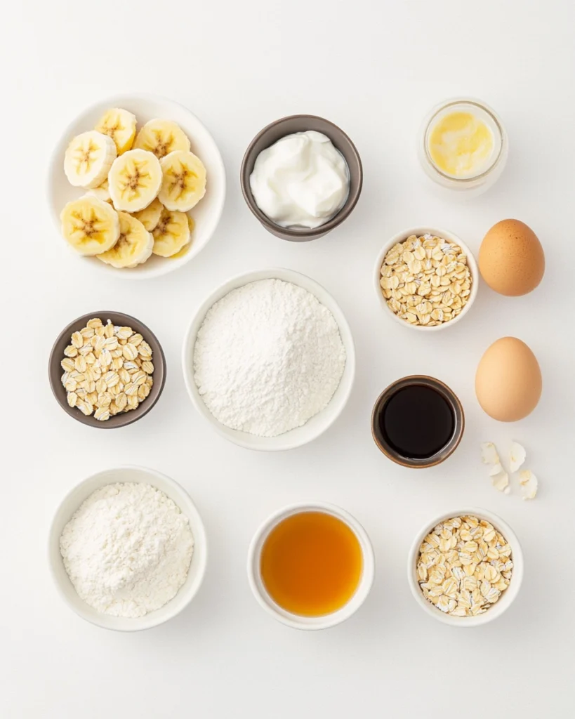 - Banana slices and oats (for topping) – Make the loaf beautiful and give a bit of crunch.
