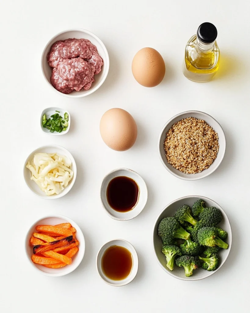 - Mix ground beef, egg, breadcrumbs, garlic, green onion, sesame oil, and soy sauce.