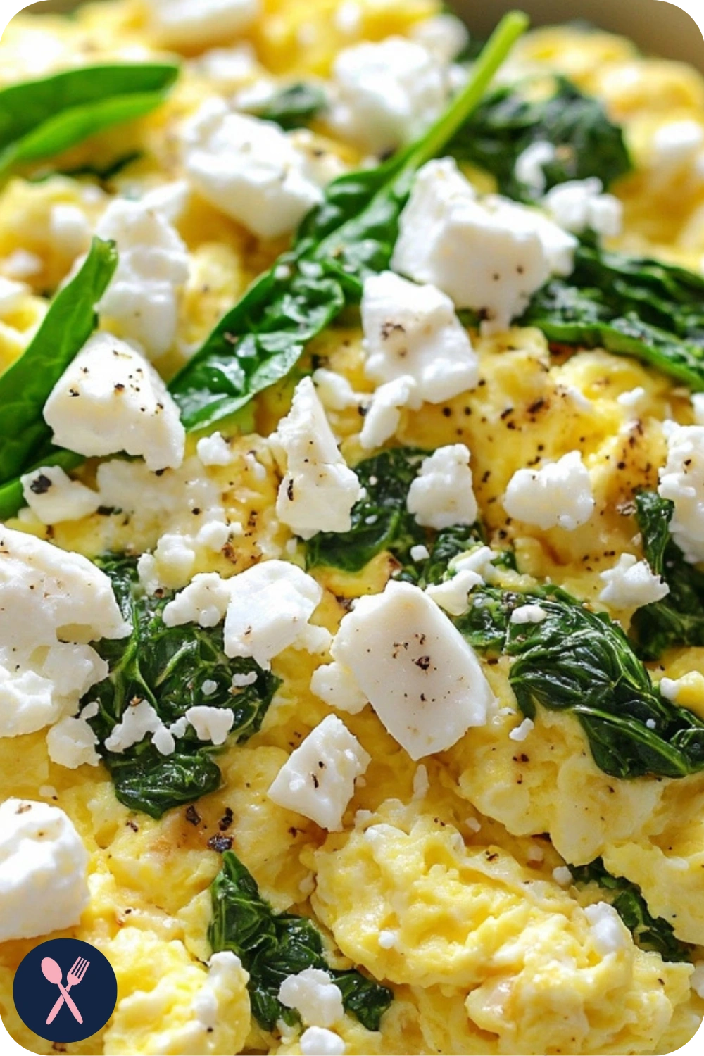 If you like your scramble extra cheesy, I suggest adding a little extra feta or even some shredded cheddar. You can also mix in chopped tomatoes or herbs like basil for more flavor. And if you’re in a rush, you can prep the spinach and feta the night before so everything is ready to toss in.