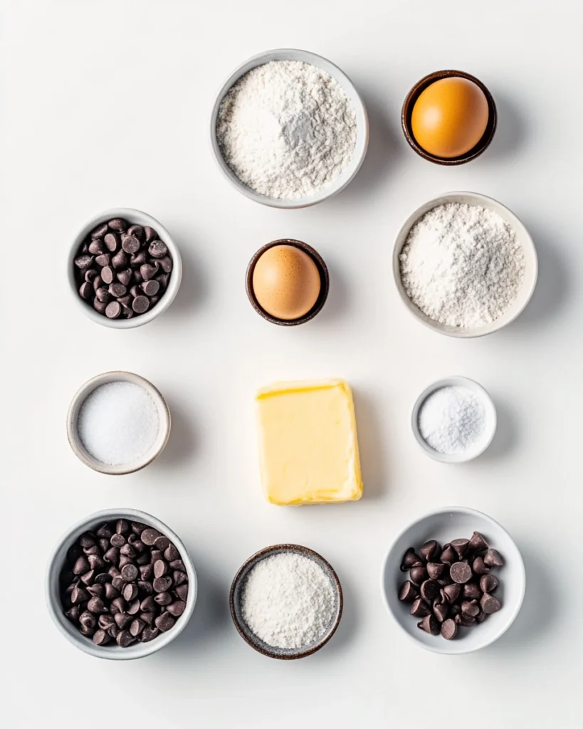 - Semi-sweet chocolate chips – The star of the show, adding melty, gooey chocolate in every bite